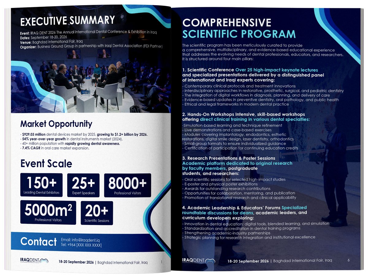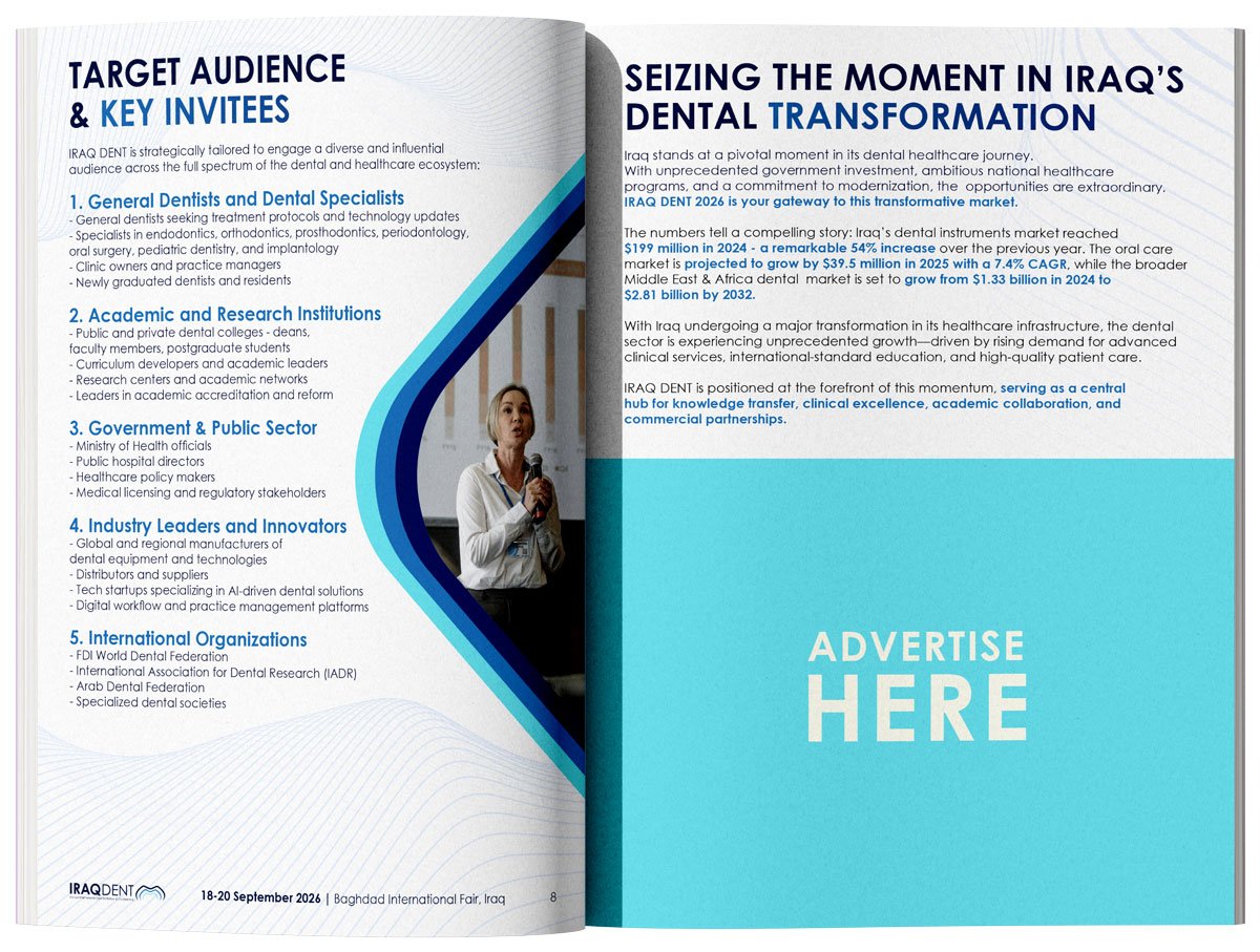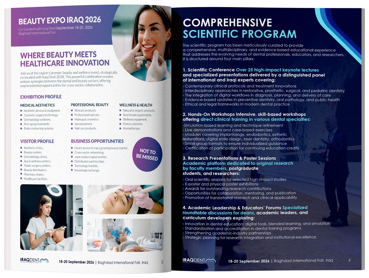 The magazine is released every year at the opening of IRAQ DENT, followed by wide distribution across Iraq’s dental ecosystem.